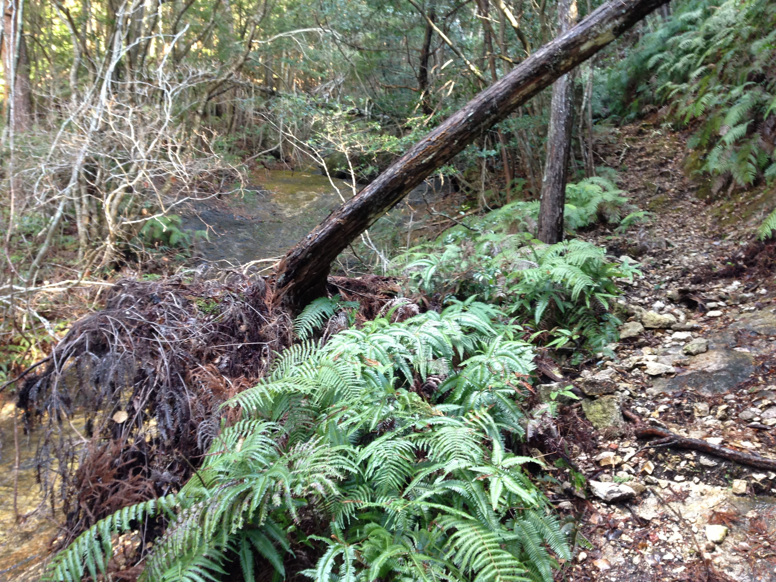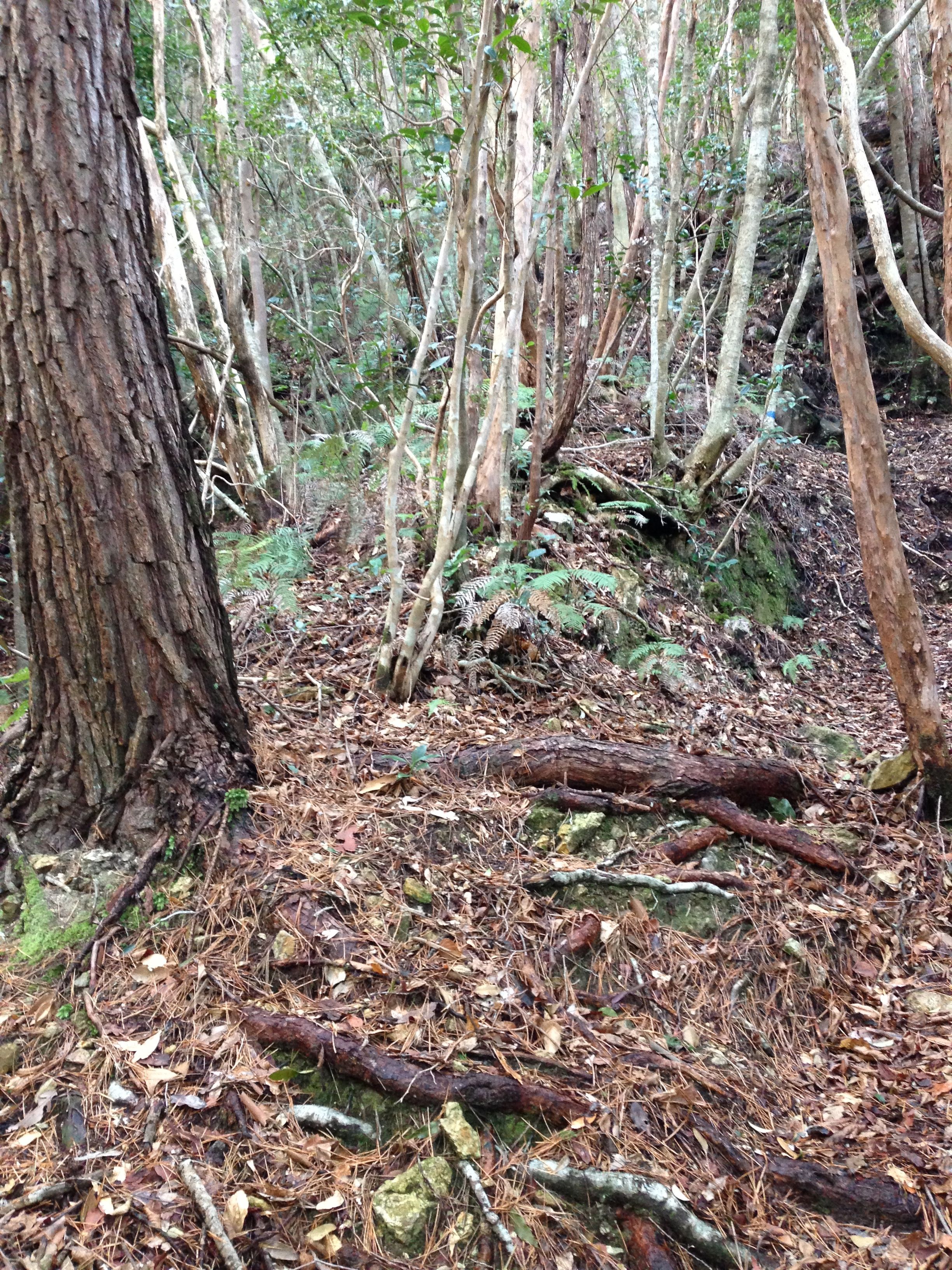 B地点の沢を渡る処まで鮮明な幅広い路。