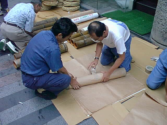 縄巻きの流れ 解説 (1)紙を巻く (2)細縄を巻く (3)太縄を巻く (4)火であぶる (5)筒選び その他の仕事 ヨウカン(ミニ手筒)作り こんな便利になりました(邪道?) ホームに戻る