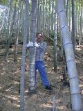 竹薮が大きい林の木の中の竹は肉厚が薄いので注意し、2、3年物の竹は弱いのでさけ、竹の色は緑色から段々濃くなり、緑黒くなった竹を選ぶ。