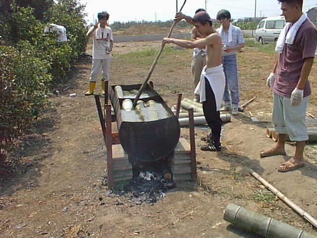 これも、暑い。ひたすら沸騰するのを待つ。時節柄、さつまいもや栗などもとってきて焼くと美味。