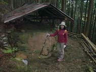 すぐに炭焼き小屋がある、この先から急登が始まる。といっても歩きやすく、登りやすい登りで今日の天気では気持ちのいい登りだ。 |