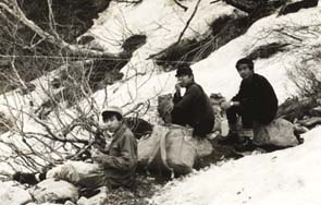 中央アルプス木曽福島から桧王岳を経て桧王尾根を緊急下山。6月9日から13日まで北岳縦走と同じメンバー。前日雨、この日もガス。この食事が8合目、この先の稜線小屋はまだ雪の下だった。それでも潜り込んで熟睡した。夕方から暴風雨、次の日も一日爆睡。翌日に雨の中、最悪なら宝剣からロープエーで下山してしまおうと言いながらいつの間にか桧王まで行ってしまった。(この年ロープエーは出来たばかり、今のように道標もなく結局ガスで分岐が判らず通過)ここで再び天気があれだしたので、桧王尾根への下山道を捜し緊急下山。この時期は道が雪の下なので捜しながらの長い長い下りだった。7月5日 谷川岳(山開き)