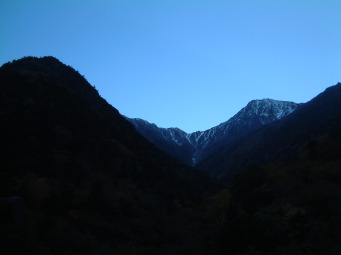 昨年より2週間はやいけど行ってみることにした。10回目の北岳。21:29豊橋自宅出発。 最後のデイリーストアで恒例通り買い足し、3時頃夜叉神峠に到着。広河原まで行かずココで仮眠にしたのは先日知人が誰もいないとこでバッテリーが上がって苦労したという話しを聞いたので、確実に人手のあるこの場所で仮眠することにした。 夜叉神トンネルを抜けて夜明け前の山並みを見てびっくり。白鳳三山が冠雪してるではないか。私はアイゼンを机の上に忘れてきてるので焦った。あとで話しを聞くと昨晩10時まで雷交じりの豪雨でその後雪が降り出したそうだ。 |