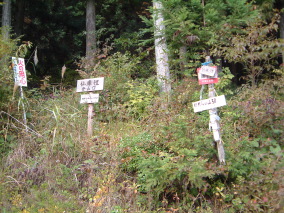 林道から山頂まではほんの数十分。人工林の薄暗い整備された道を登って行けば直ぐに登頂できる。