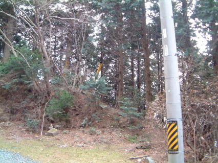 そこから50mほど尾根幅が広くなった斜面を攀登るとコンクリートの電信柱の場所に出た。