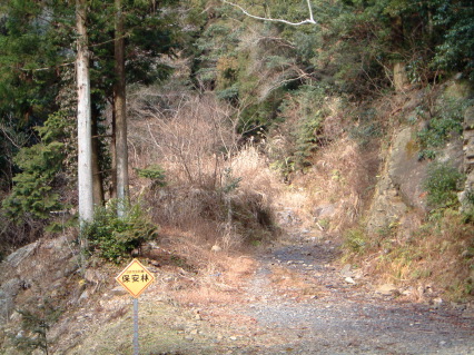 横を下りて林道に到着。