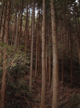 少し登り200mあたりから低草類が消え枯れ木の間を尾根に沿って登って行けるような跡らしきものが感じられるようになる。