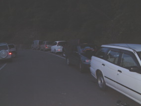とうとう週末デビューをしてしまった。今年は天気が不順なので天気図をチェックして行けそうな時に行かないと機会を逃がす。子供の時の遠足ではないが土曜日の朝はちょっと緊張と興奮で早くから目が覚めてしまった。三伏峠への登りは昔の塩川土場からの登りもバテバテで苦労した覚えしかない。鳥倉林道利用で三伏峠への行程が楽になったとは聞くけどどんなものか不安が先立った。しかも今回は何と下見までしてるのだ。6月25日に嫁とドライブがてら、稲武から飯田ヘのルート調べと鳥倉林道を終点まで行って道路状態チェックを終えているのだ。この時は鹿や猿や丁度ヘリの荷揚げまで観察できた。ここに対する意気込みが解るというものです。初めての林道をそれも深夜に走るのは非常に緊張するので、この確認は安心と安全を与える。出発前の不安は8月最初の土日、しかもやっと晴のある土日だからそんなに広くなかった駐車場がどうなってるか?というのが心配だった。 |