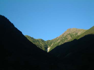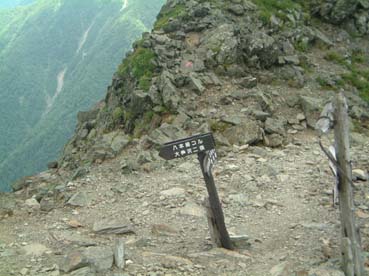 下った稜線分岐、まだ視界はある。 広河原に下ってる時にも4パーティ程すれ違ったけど御池に泊まるのか?それとも明るいので夕方までには稜線小屋まで行ってしまうのだろうか?どちらにしてもそんなおそがけな行動はしたくない。