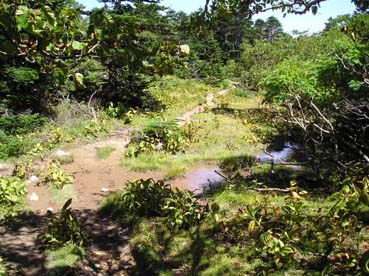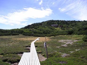 温泉と冷たいビールのため下山開始。1800m辺りで一度水分補給し、かなり興奮状態で下山していった。 文章にすれば一言、やがてで終わるが、緩い勾配に変わりすっかり暗くなった見覚えのある苔原にで橋を渡り完了。 |