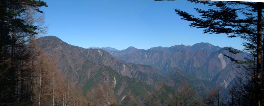 最後の休日、迷った結果前回の山犬段から東のコースを歩いてみることにした。 天気は絶好、身支度を終え笹林の登山道に入る。静大の小屋を過ぎ幅広い道を流していくと八丁段との分岐に出る。 (左写真 板取山からの展望) |