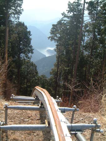 少し登ると明るい鉄塔前に出る。鉄塔前からは作業用のレールがスズカタ林道へと伸びており昔明神に簡単登山した人の話を思い出した。