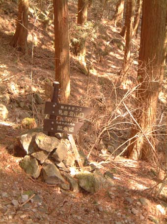 鬼岩は岩登りの練習場として人気と聞いてはいたが、私の登る時が不人気な季節ばかりなのか一度もぶつかったことは無かった。 今日は始めて1組がやってるとこを見た。 |