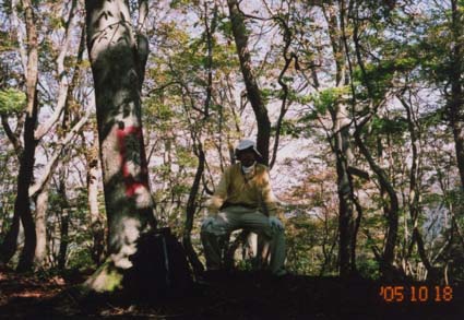 北側から雲もはりだしてきたので下山の準備をした。東雨乞岳に着くと風がかなり冷たく吹きつけるので直ぐ下山。再度笹林のトンネルをくぐり七人山のコルに。 時間もあるのでそのまま七人山1073mに向かう。ヤヤ広めの尾根の真ん中を真直ぐに登ると直ぐに到着。 木々にテープが5m置きぐらいにあった。視界のない広い丘という感じ。写真だけ撮って下山。 再度七人山のコルで残飯整理してから下山。登りよりも下りの方が更に散策コース的に感じた。登りと同じだけの時間をかけてダラダラと下山。 今日は単独2名(私含む)団体2グループ(15+5)の4パーティと出合った。本山に比べればやはり少ないのかな? 帰路は前回同様グリーンホテルにて汗を流し、ETCの通勤割引時間調整をして帰宅。 |