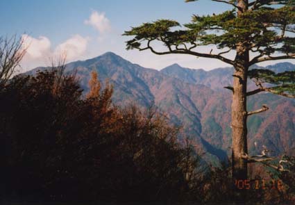 やっと本尾根上を歩くことになった。左側が落ち込んだやはりヤセ尾根が続く。ここからはそれほど急ではなく左手正面に見える崩壊地越しの山頂直下までをつめるように上って行く。ちょっとした散策、里山の散歩をしてるような足場の気持ちいいコースだ。30分程で最初の展望台を通過、直ぐに二つ目の展望台も通過する。徐々に左手の崩壊面が近づきアカヤシオ・シロヤシオ自生の看板を過ぎた辺りから山頂への最後の急登が始まる。