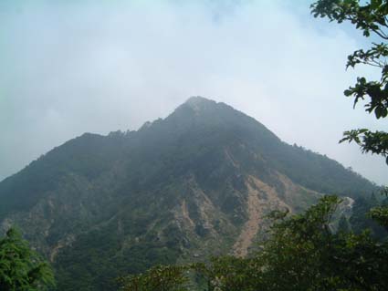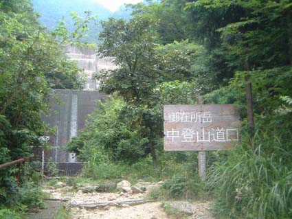 笹尾根を通り狭い堀割りの斜面の登りが続き岩場の鎖場となり登りきると鎌ヶ岳山頂だった。 奥に神社と小広場をもった山頂だ。着いたと思ったら再度ガスが出始め見晴しは無くなってしまった。 食べるものはないし蒸して暑いのだけは変わらないので汗は噴出しっぱなしだしなので咽だけは水分を欲した。 山頂だけガスに包まれたので下山開始、一気に下りトンネル前まで降りてみたら既に駐車場には人の後もなくなっていた。 ここの駐車場は鎌ヶ岳と御在所の横着登山をやるメインコースかも知れない。 登る時に見た立寄り湯の看板を頼りにグリーンホテルで湯に浸かり汗をしっかり流し気分一新してから帰路に着いた。(650円) |