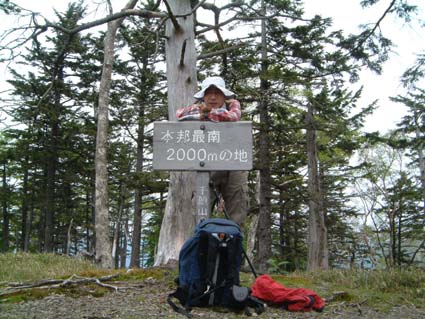 やっとの思いでガレ場まで戻り下って最後の登りを気合いを入れ再度ゆっくり登り終え、たどり着いた鋸山で休憩。 小虫や蚊が煩わしい状態にもなった。一戻りで千石平に着き林道目指しての下山を続けた。 小屋で息抜きをした後撤収。車のワイパーに浜松グループのコメントがはさんであった。 久しぶりに良い人達に出合い気持ち良く川根温泉に向かう。風呂を出て何とか東名通勤割引に間に合い帰路についた。眠かった。 |