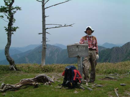 山犬段小屋着仮眠 (右写真バラ谷頭より黒法師岳丸盆を背景に) |