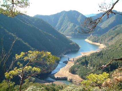 石楠花コースは広く整備された遊歩道なので非常に快適に飛ばした。途中から岩尾根になり、風がこないと暖かな陽気だ。正面に宇連ダムと鳳来湖、宇連山と東尾根を望みながら岩尾根を下って行き、岩盤から樹林に入ってホンの少し下るとあっけなく湖畔道路に下り立った。