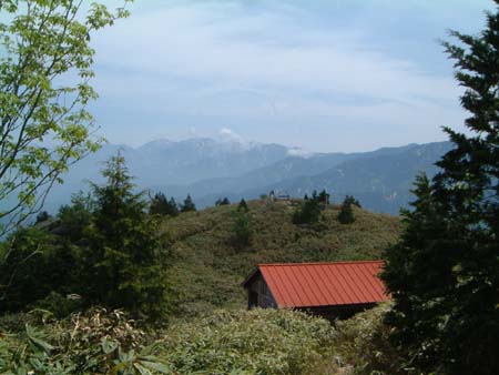 1200mあたりから一気に山頂近くまで400mの急登が一回あるだけの単調な登りだ。 小屋の中は整頓されており、トイレも完備。小屋前小ピークではドコモが通じるとの案内も張ってあった。正面の中アを眺めながら小ピーク上で静かに大休憩。この山が人気なのは多分この場所のせいだ |