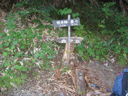 幅広い林道を行くとやがて徳本峠の古い看板があり、道幅が狭くなり少しは遊歩道らしくなる。
