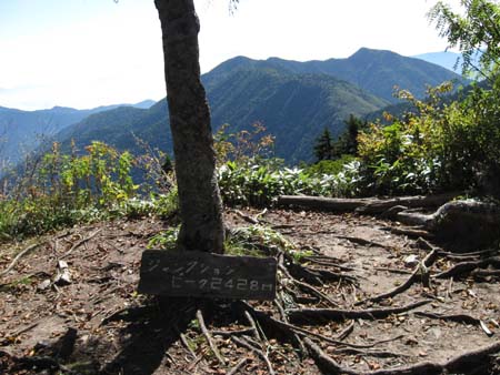 ハイマツ帯からヒョイとたどり着いた山頂は、何もない小広場。