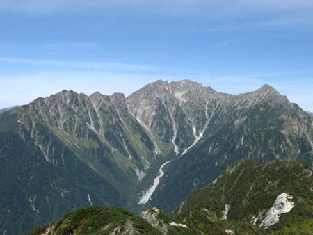 この山は天気が悪いと行く価値がない(ピークハンターは別として)。何と言っても穂高、焼岳を正面から見渡すことができる梓川対岸の山だ。欠点は徳本峠経由しか道がないことと最終バスとの時間競争になりそうなことだ。去年も天気が悪かったので急遽西穂に行き先変更した山だ。