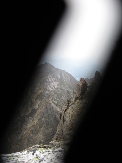 要所要所に新しい赤いリボンがたれていた。沢詰めから急登が始まり程なく岩の下を回って南尾根に出る。