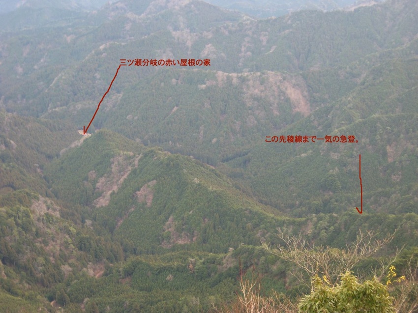 とにかく尾根をはずなさい。816m辺りの岩場に昔の石碑があったとこを見ると、このコースが以前は三ツ瀬ルートで使われていたけど、