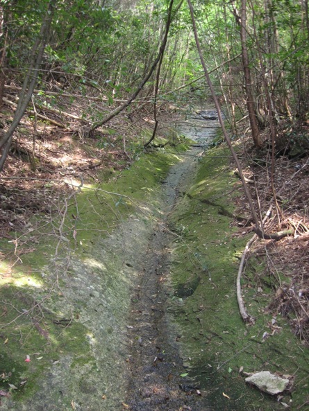 乳岩廃屋横からしっかり伐採された道をオレンジ岩方向に登って行く。オレンジ岩までは沢筋の登高差の少ない道。