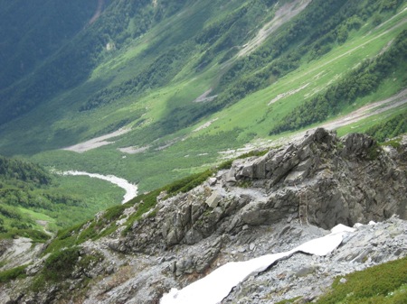 岳沢、重太郎新道から 曇 単独 |