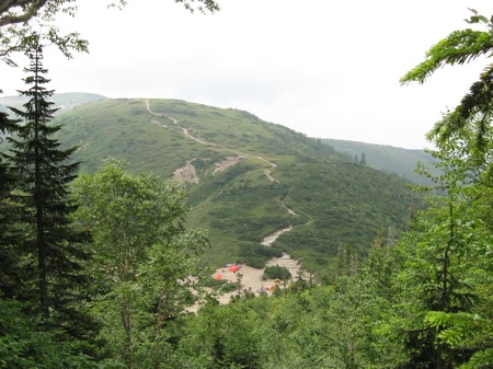 ゲート(6時開門20時閉門)がやっかいで中々決心がつかなかった山だ。 隣の車回りの音で毛布から抜け出し、朝食を食べ出す。隣の年配のご夫婦は4時には出発して行った。 |