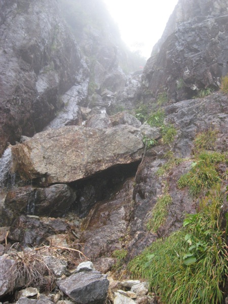 雨で水量の多いため、ここからは濡れながら滑る岩に神経を集中しながら登る事になった。